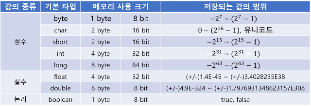 * νμ λ³ ν¬κΈ° μμ: byte < short < int < long < float < double