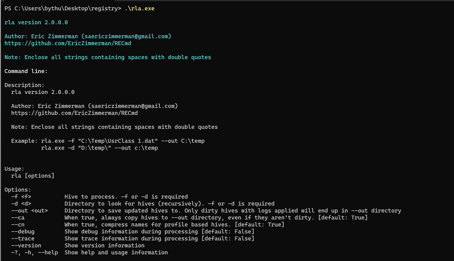 > .\rla.exe -d "C:\Users\bythu\Desktop\registry\raw" --out "C:\Users\bythu\Desktop\registry\clean"