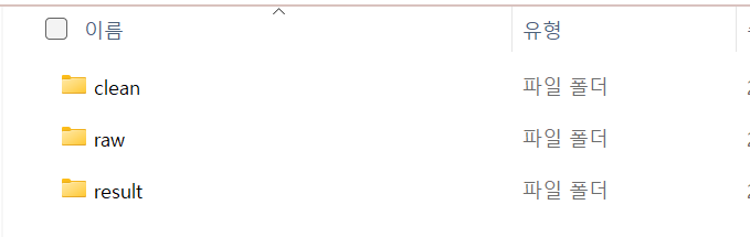 registry ํด๋ ์์ clean, raw, result ํด๋ ์์ฑ