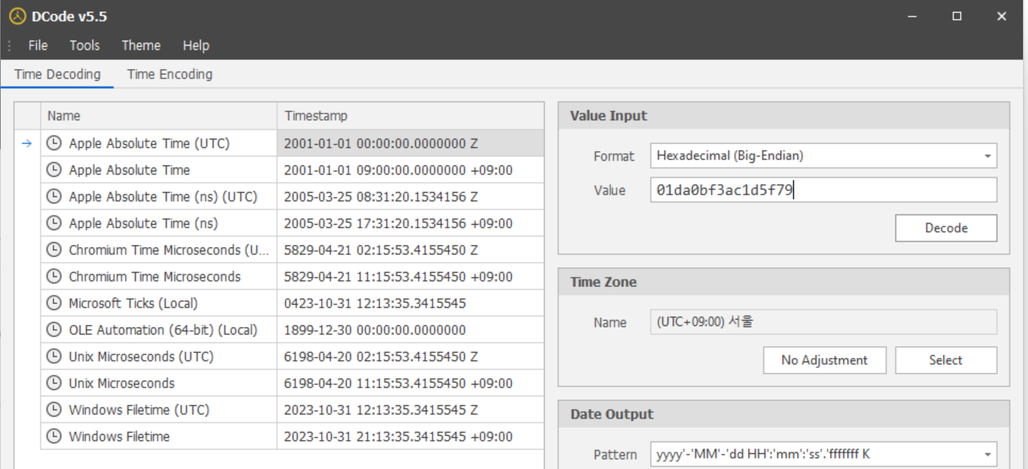 DCode™ is a FREE forensic tool for decoding data found during digital forensic examinations into human-readable timestamps.