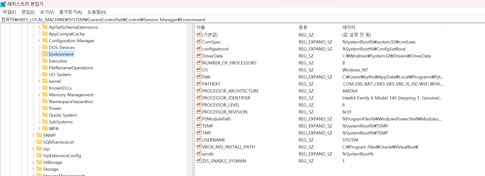 HKEY_USERS\S-1-5-21...1001\Environment์ผ๋ก ๋ค์ด๊ฐ๋ฉด ์ฌ์ฉ์ ํ๊ฒฝ ๋ณ์๋ฅผ ํ์ธํ ์ ์๋ค