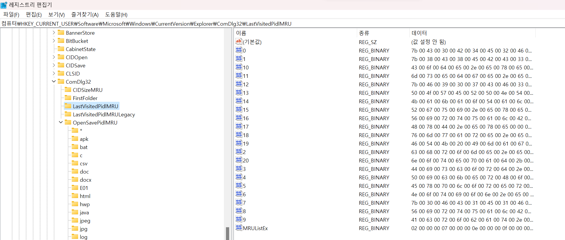 - OpenSavePidIMRU : ์ด๊ธฐ ํน์ ์ ์ฅ ๊ธฐ๋ฅ์ผ๋ก ์ฌ์ฉ๋ ํ์ผ