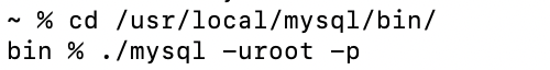 - mysql์ root๊ณ์ ์ผ๋ก ์คํํ ๊ฒ (-p: ํจ์ค์๋ ์ ๋ ฅ)