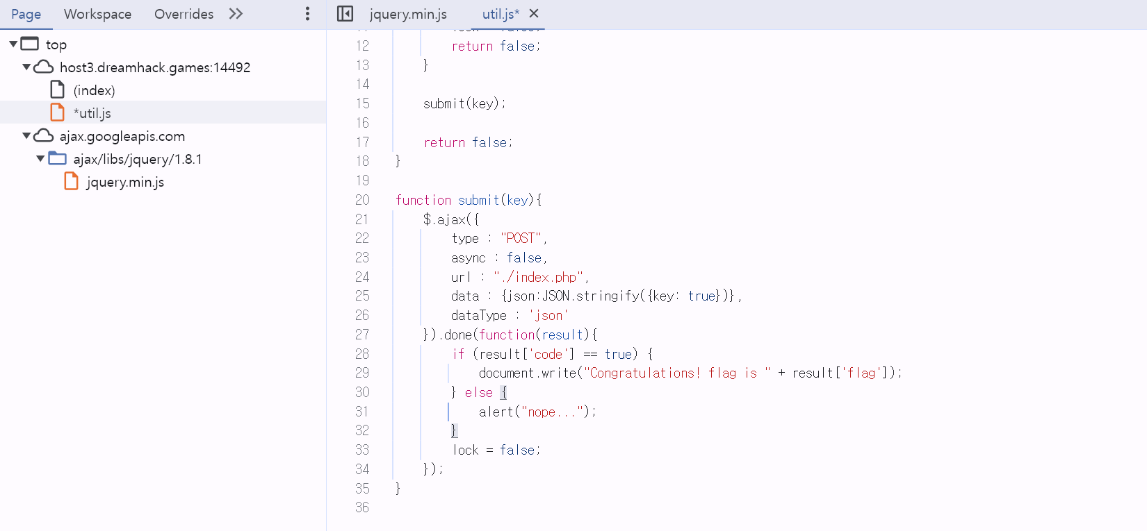 ์ด ๊ฒฐ๊ณผ๊ฐ post ์์ฒญ์ ์คํ๋๋ gen_key() ํจ์์ ๊ฒฐ๊ณผ๋ก ๋์จ key๊ฐ๊ณผ ์ผ์นํ ๊ฒฝ์ฐ์๋ง flag๋ฅผ ๋ฆฌํดํด์ค๋ค.
