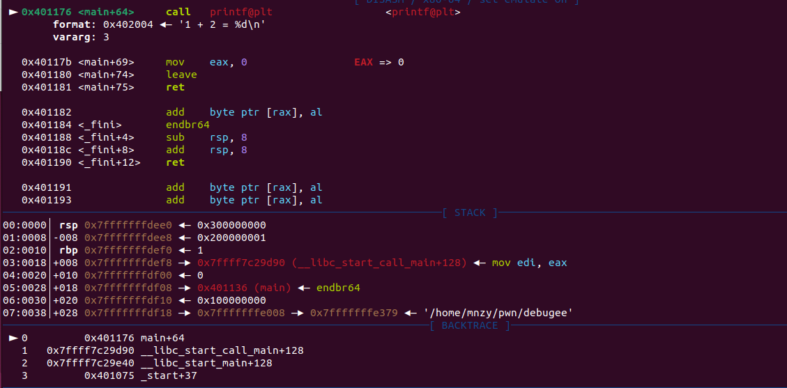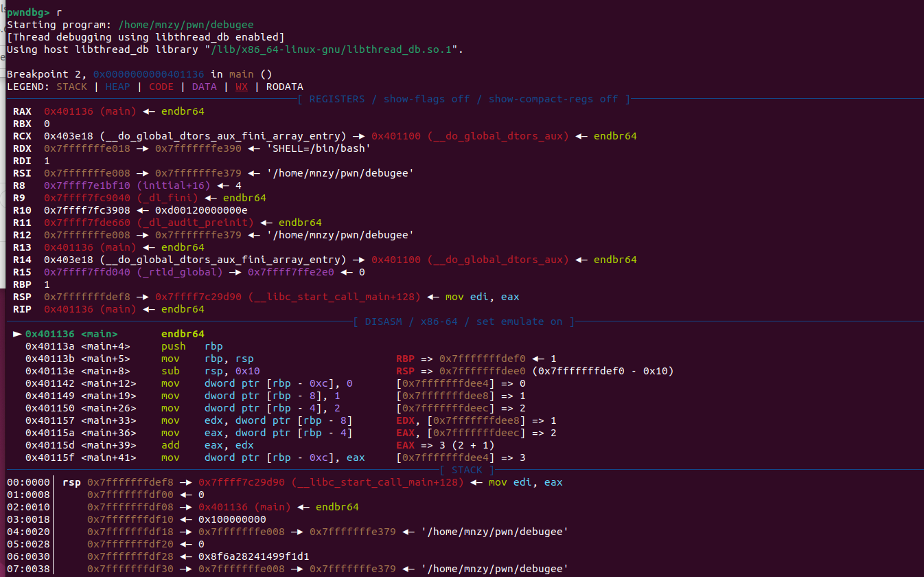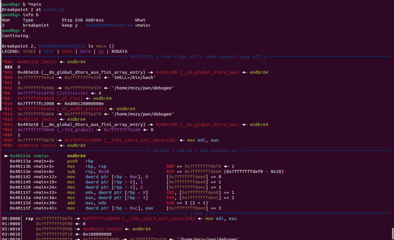 - mainํจ์์ breakpoint ๊ฑธ๊ณ c ํด์ฃผ๊ธฐ