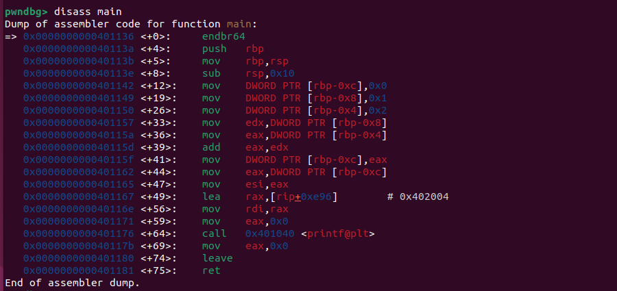 disassemble(disass)์ gdb๊ฐ ๊ธฐ๋ณธ์ ์ผ๋ก ์ ๊ณตํ๋ ๋์ค์ด์ ๋ธ ๋ช ๋ น์ด์ด๋ค.