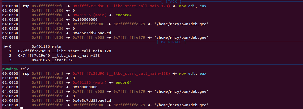 telescope์ pwndbg๊ฐ ์ ๊ณตํ๋ ๊ฐ๋ ฅํ ๋ฉ๋ชจ๋ฆฌ ๋คํ ๊ธฐ๋ฅ์ด๋ค.