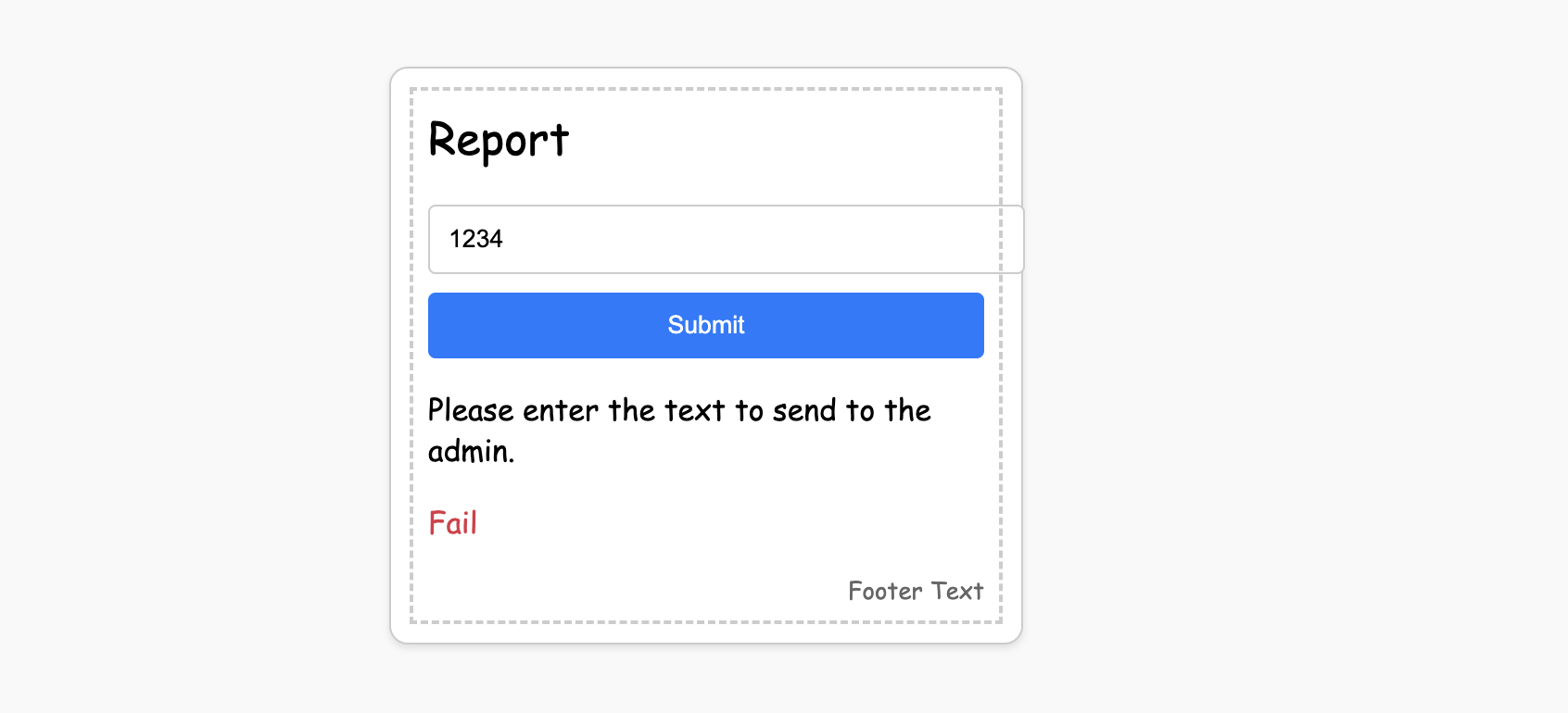 ๋ค์์ผ๋ก report ํ์ด์ง์ ์ ์ํ์ฌ form์ ์๋ฌด๊ฐ์ ์ ๋ ฅํด๋ณด์๋๋ fail ์ด ๋ด๋ค.