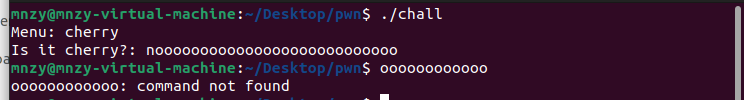 | fruit[0x6] ("cherry") | <-- ๋ ๋ฒ์งธ overflow ๋ฐ์ ์ง์
